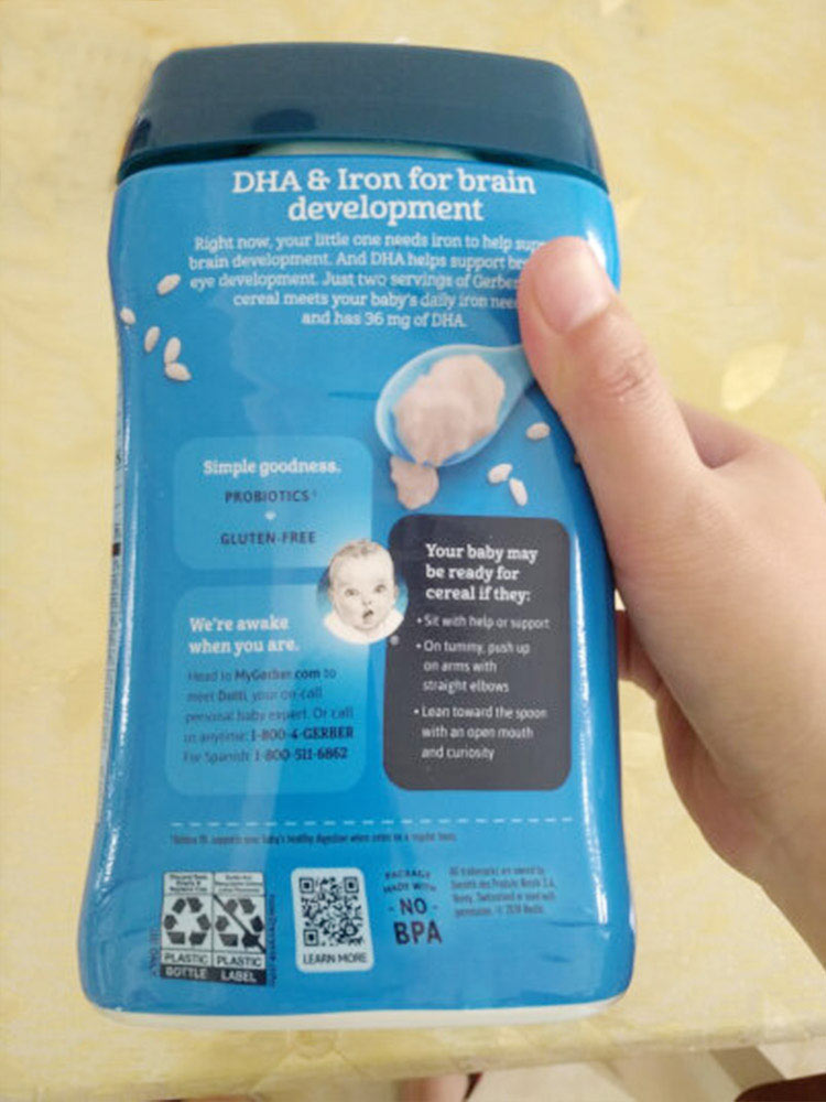 米粉超级好吃,宝宝非常爱吃,一顿两勺整好,嘉宝的米粉纯天然,无添加剂,宝宝吃着也不过敏,排便非常好,一天一便,盒子凹形的,拿起来也十分方便,米粉泡着也很细腻。
