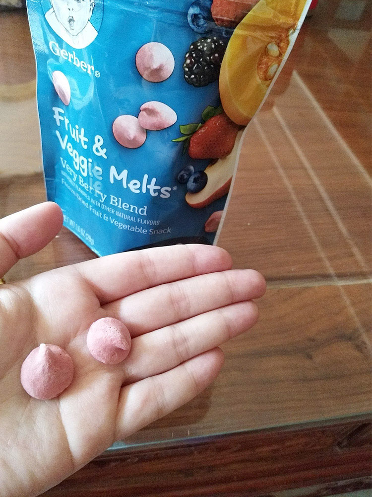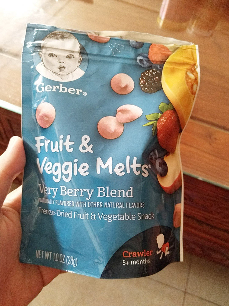 宝宝九个月,第一次吃的时候表情特别好笑,也不会自己放进嘴里,都是我喂的。慢慢的每天一两颗,她自己也会用手抓了,喜欢吃,自己放进嘴里。