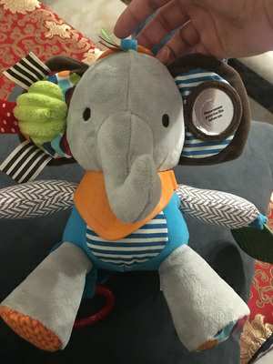 小象两个耳朵都有响纸,一只带摁响,一只耳朵带镜子,第一款宝宝的玩具,客服态度很好,很满意。