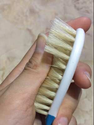 真的是天然鬃毛,软硬度适中,打开还能闻到气味,用宝宝的洗衣液轻轻涮一下,宝宝梳着舒服.不错。