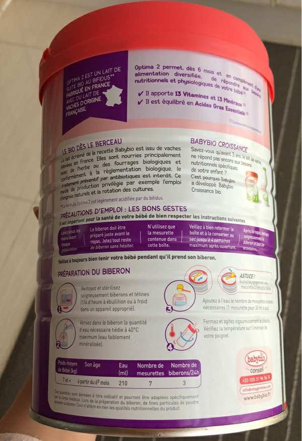 Babybio 法国伴宝乐OPTIMA有机婴幼儿奶粉2段 6-12个月 800g 法国本土原版