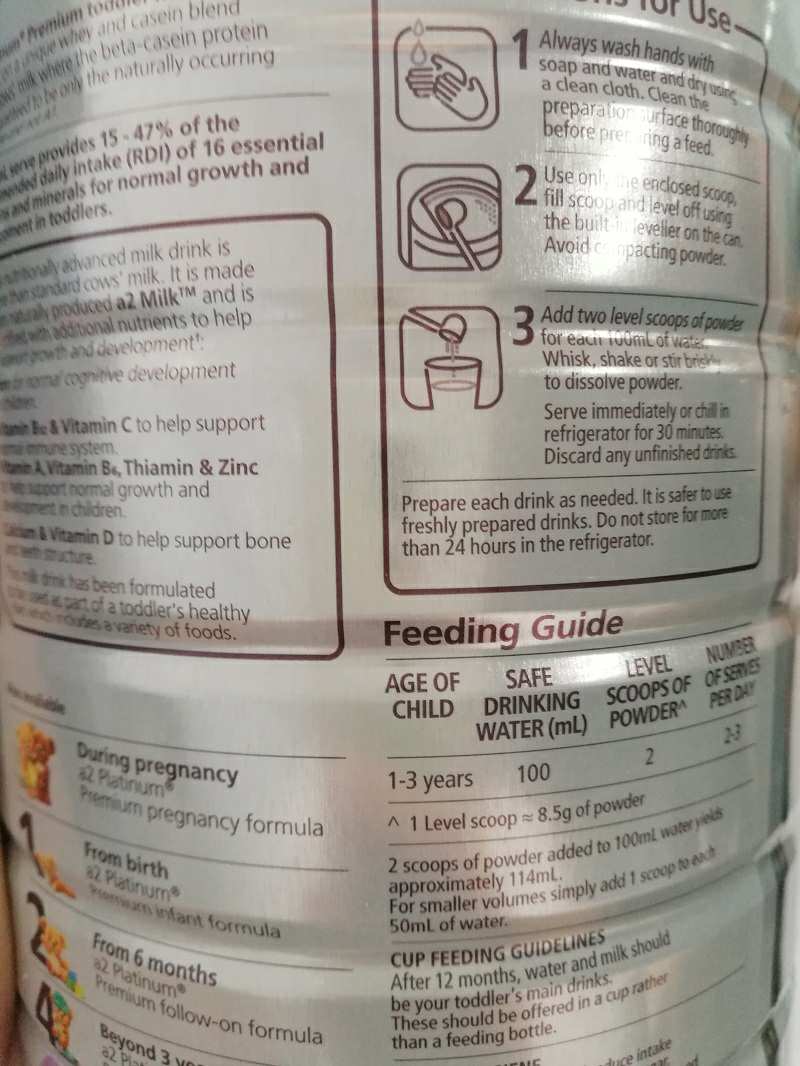 A2 澳洲A2紫白金系列婴幼儿奶粉3段 12-48个月 900g 澳洲本土原版