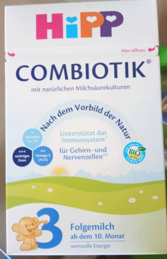 纸盒包装,里面有个锡纸袋子,比较简单,很外国的包装。就是有些清淡呢,宝宝不太爱吃。看来转奶无望了。还是换回之前的澳洲爱他美吧。