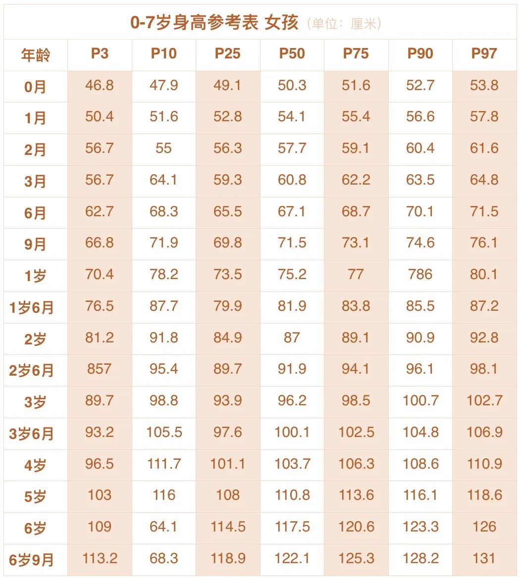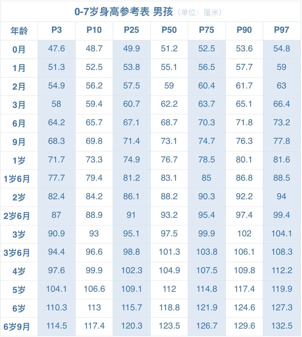 • 注意,表格里的数据仅供参考,孩子的身高不是越高越好,而是要在相应年龄段的范围内保持稳定才是最好,大家不用刻意去追求百分比的高。
